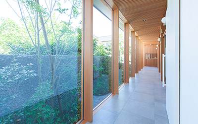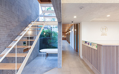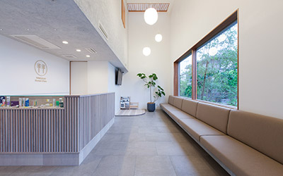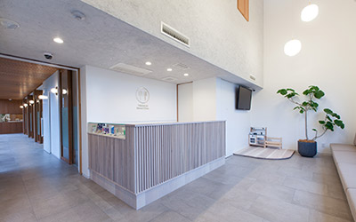 医院は全てバリアフリーとなっており、車椅子の方も安心して診療を受けていただけます。またキッズズペース、おむつ交換台、パウダールーム、駐車場(14台)等完備しており、ご家族や全ての年代の方に安心して来院していただけるよう心がけています。
